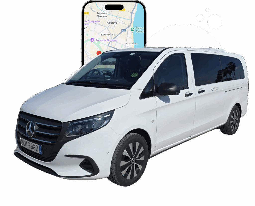 Disfruta de un servicio de traslado cómodo y personalizado en cada momento de tu viaje. Con nuestro transfer directo al aeropuerto de Valencia, te recogemos a tu llegada y te llevamos directamente a tu alojamiento o punto de destino, sin esperas y con total puntualidad. Y si lo que necesitas es un transfer al puerto de Valencia, también nos encargamos de que tu traslado sea rápido, seguro y sin complicaciones, tanto al embarcar como al regresar de tu crucero. Viaja con la tranquilidad de saber que todo está bajo control desde el primer hasta el último trayecto.